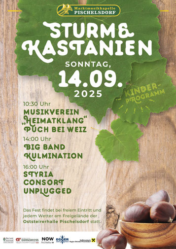 Nicht nur kulinarische, sondern auch musikalische Highlights erwarten Sie am So., den 14. September 2025 beim Sturm- und Kastanienfest der Marktmusikkapelle Pischelsdorf.